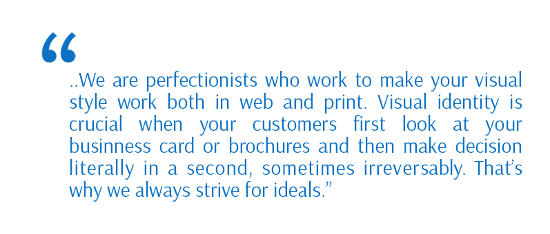 At this level we elaborate full corporate identity or product design. Work is performed in a close cooperation with a customer when activity area,
